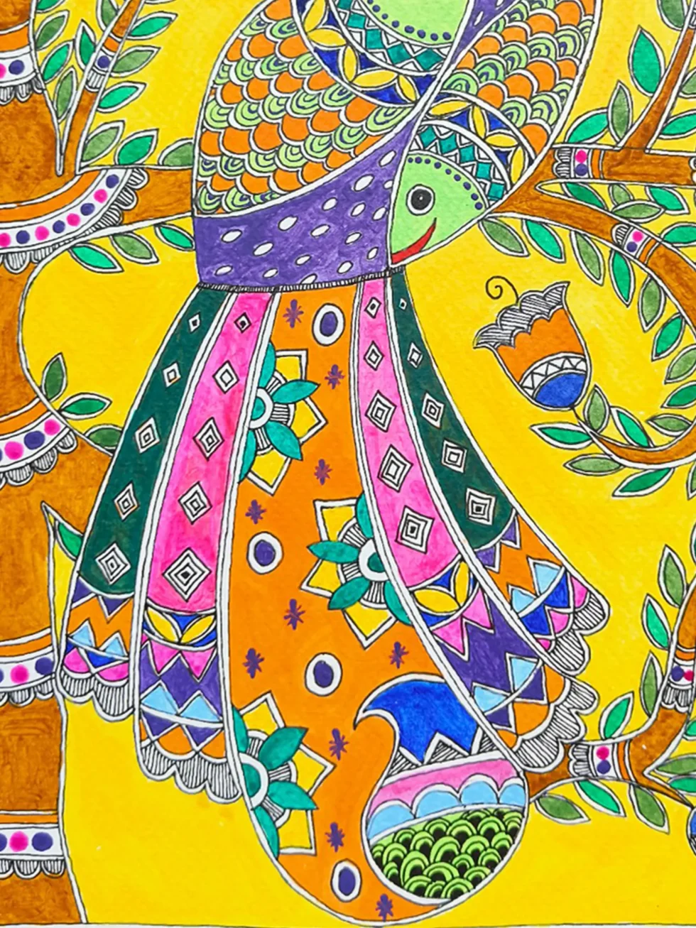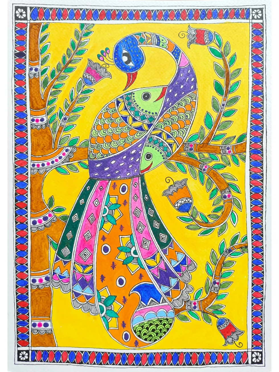 Beautiful Peacock On Tree | Acrylic On Handmade Paper | By Saral Panchal