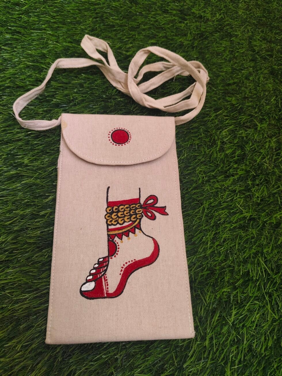 Dancing Leg Hand-Painted Madhubani Mobile Sling