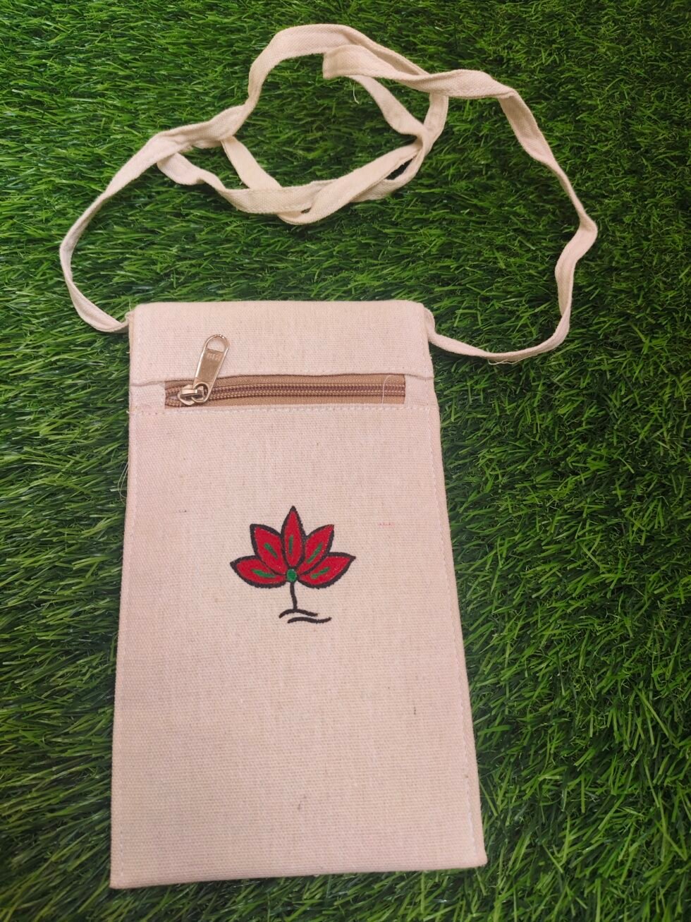 Add a touch of tradition to your everyday style with this beautifully hand-painted Artistic mobile sling bag. Lightweight, compact, and easy to carry, it features a secure Velcro closure and a comfortable cotton sling—perfect for keeping your essentials safe on the go.