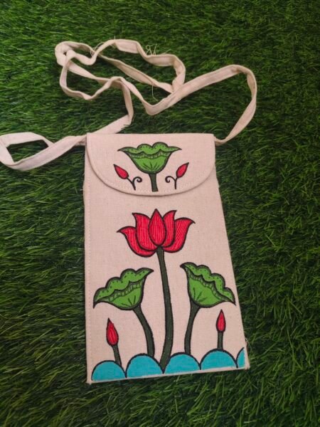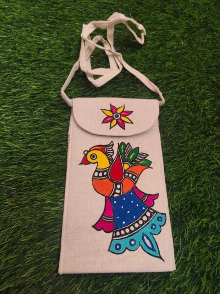 Add a touch of tradition to your everyday style with this beautifully hand-painted Artistic mobile sling bag. Lightweight, compact, and easy to carry, it features a secure Velcro closure and a comfortable cotton sling—perfect for keeping your essentials safe on the go.