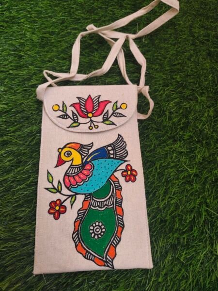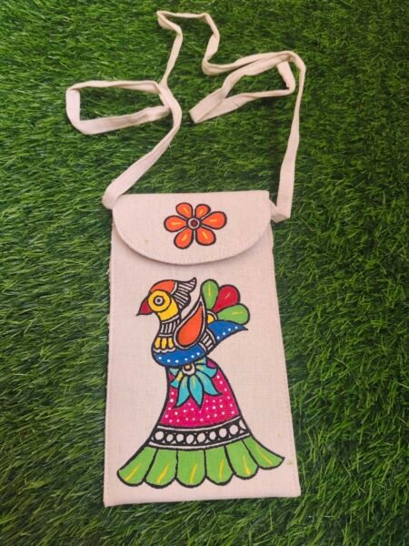 Add a touch of tradition to your everyday style with this beautifully hand-painted Artistic mobile sling bag. Lightweight, compact, and easy to carry, it features a secure Velcro closure and a comfortable cotton sling—perfect for keeping your essentials safe on the go.