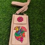 Add a touch of artistic elegance to your everyday look with this hand-painted clutch cum mobile sling, crafted on eco-friendly jute fabric. Adorned with beautiful Indian folk art motifs, this piece reflects traditional craftsmanship with a modern twist.