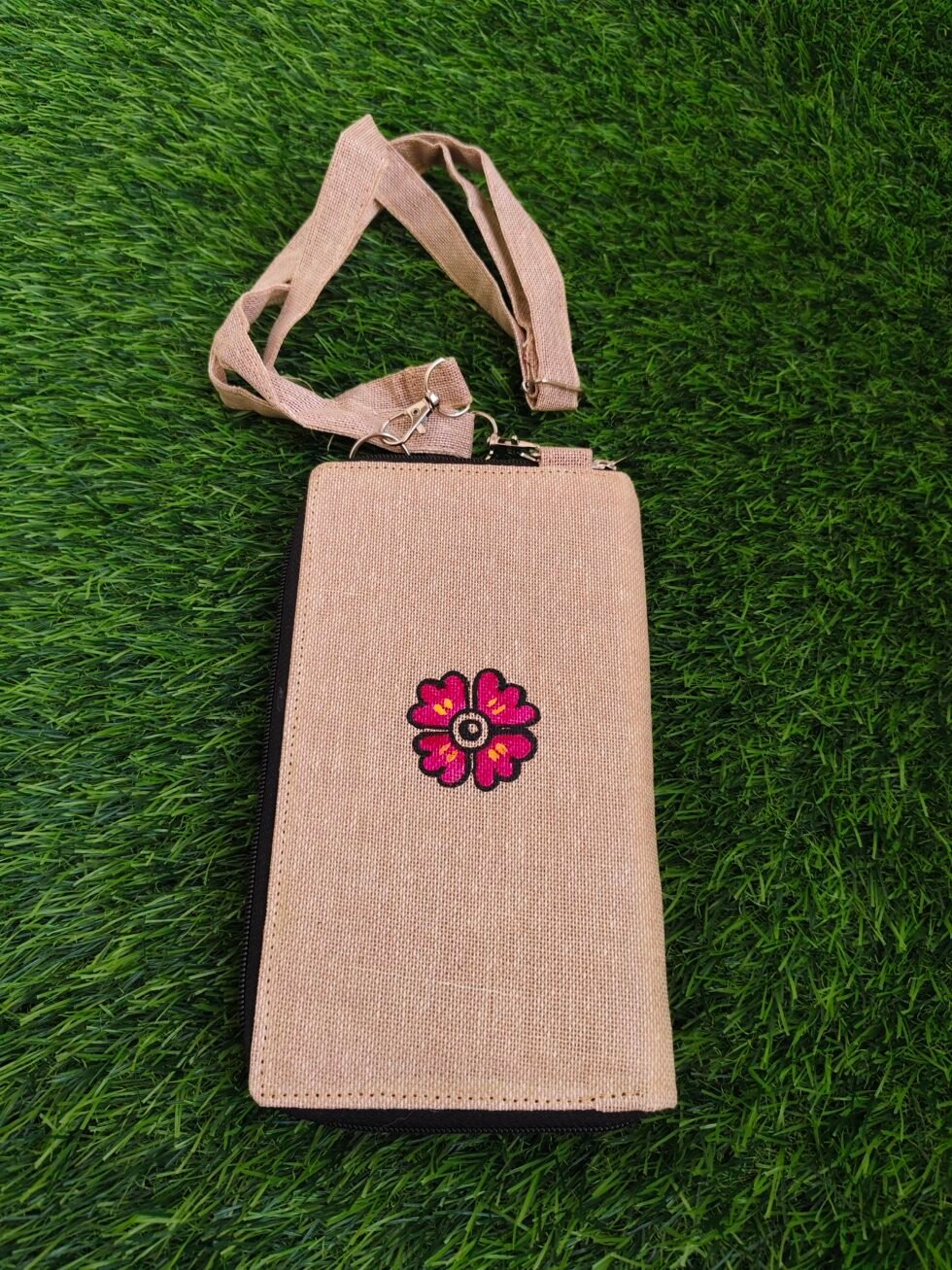 Hand-painted jute clutch cum sling with beautiful Indian folk art motifs. Compact yet spacious, it easily carries your phone, cash, and essentials—perfect for daily use, gifting, and festive styling.