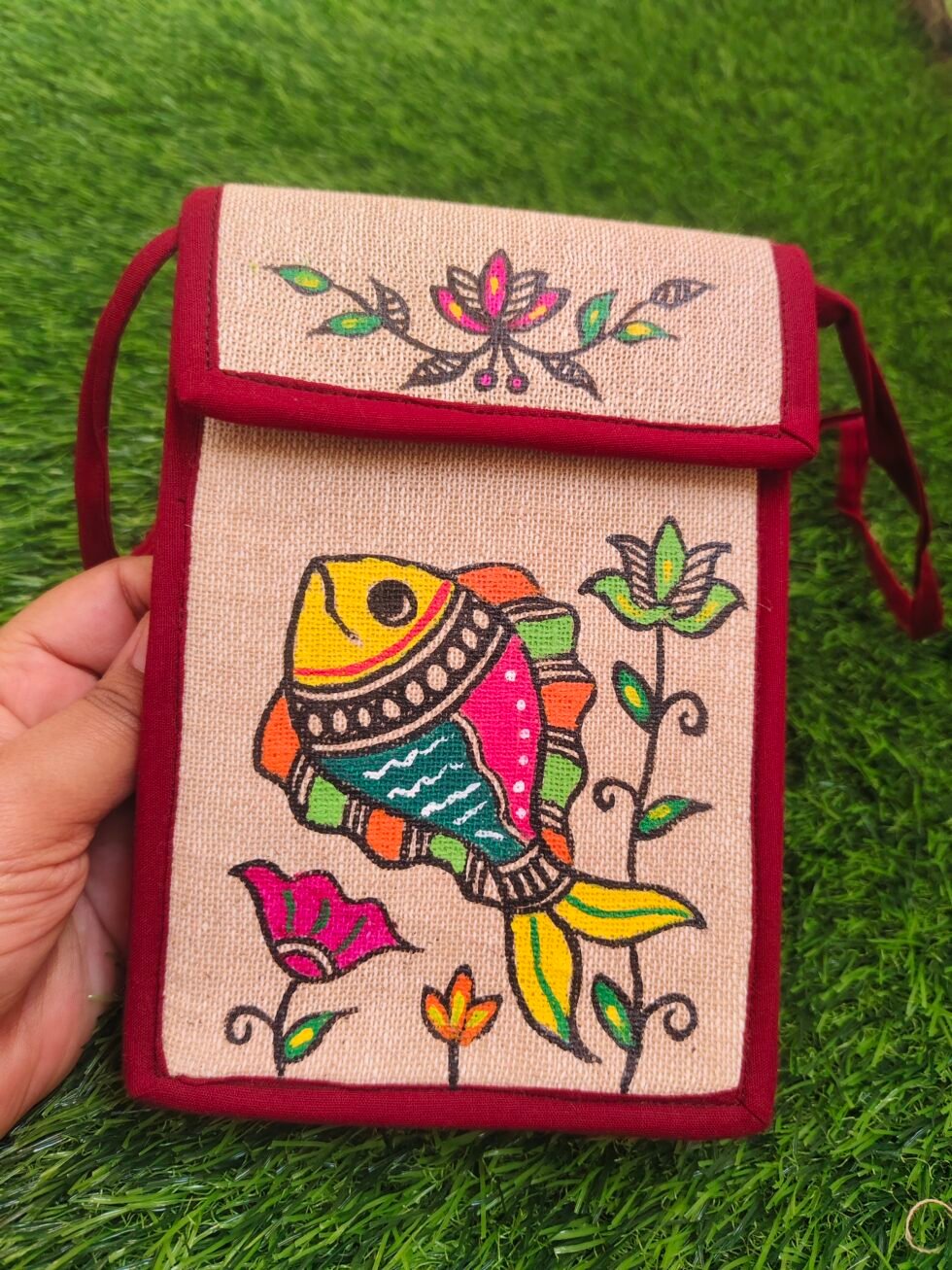 Lotus Fish Hand-Painted Madhubani Mobile Sling