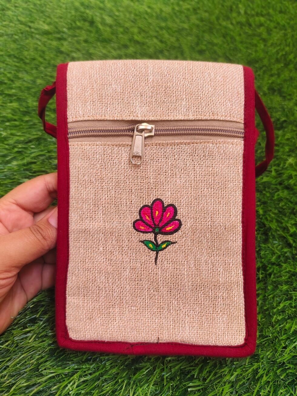 Add a touch of tradition to your everyday style with this beautifully hand-painted Artistic mobile sling bag. Lightweight, compact, and easy to carry, it features a secure Velcro closure and a comfortable cotton sling—perfect for keeping your essentials safe on the go.