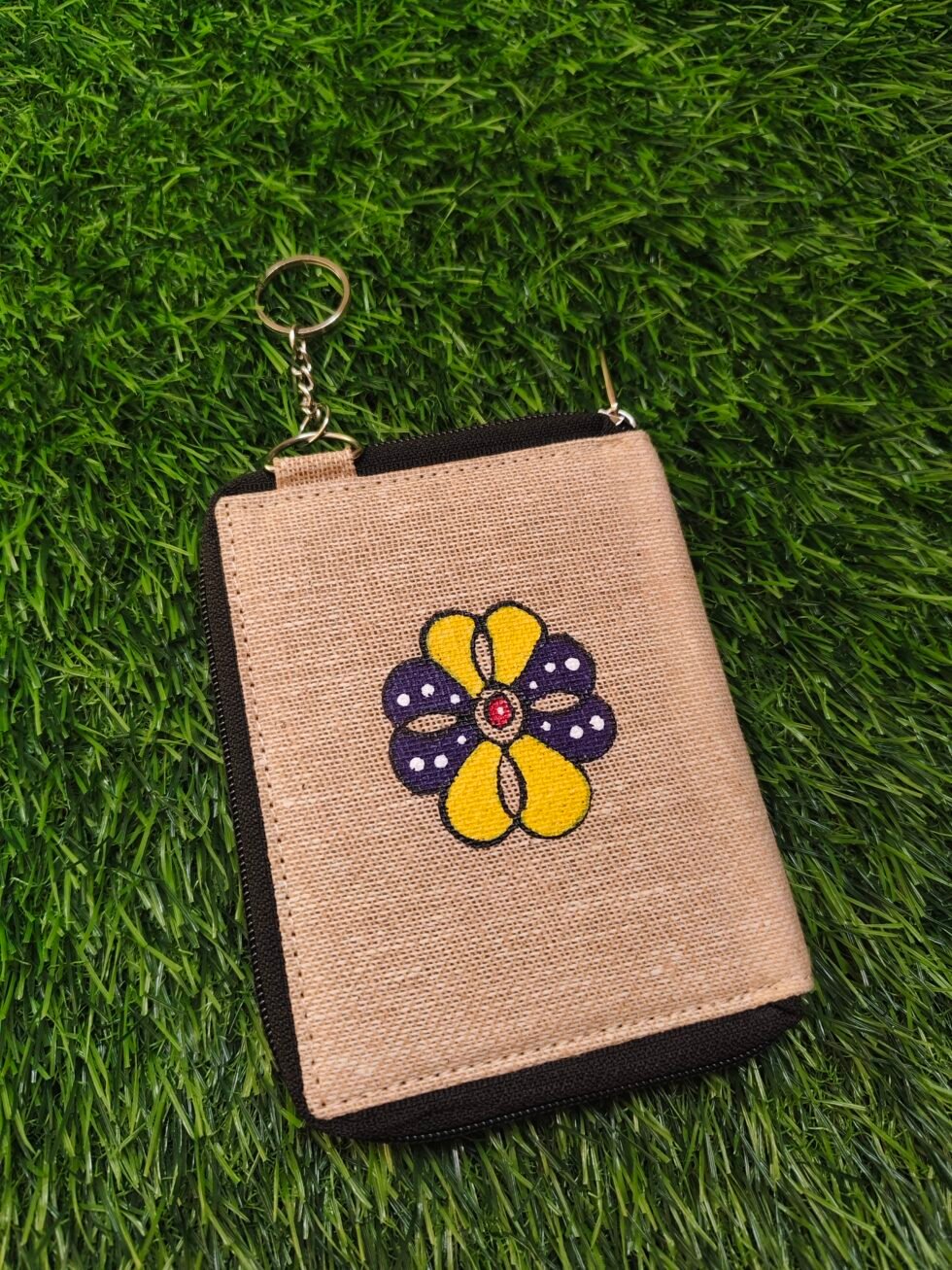 Handmade ladies wallet crafted from eco-friendly fabric with a beautiful Madhubani hand-painted design. Compact, stylish, and perfect for everyday use.