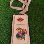 This beautifully hand-painted ladies’ clutch is a stylish way to carry your essentials. Crafted from durable jute, it features intricate Indian folk motifs brought to life through traditional hand-painted art. Perfect for adding a touch of ethnic charm to any outfit, this clutch blends elegance with cultural artistry.