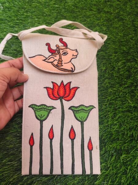 Add a touch of tradition to your everyday style with this beautifully hand-painted Artistic mobile sling bag. Lightweight, compact, and easy to carry, it features a secure Velcro closure and a comfortable cotton sling—perfect for keeping your essentials safe on the go.