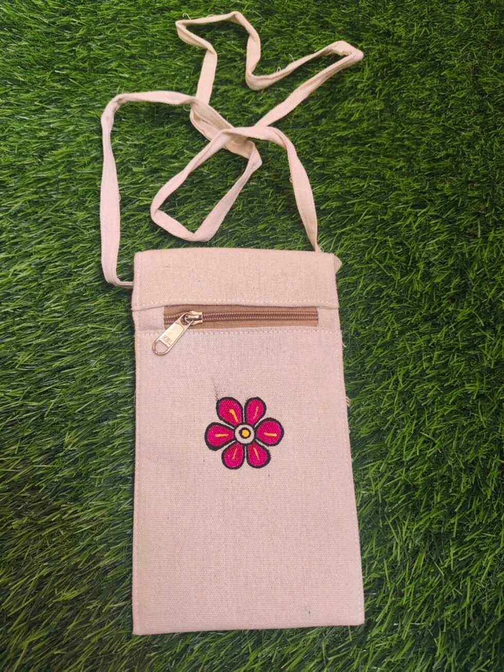 Add a touch of tradition to your everyday style with this beautifully hand-painted Artistic mobile sling bag. Lightweight, compact, and easy to carry, it features a secure Velcro closure and a comfortable cotton sling—perfect for keeping your essentials safe on the go.