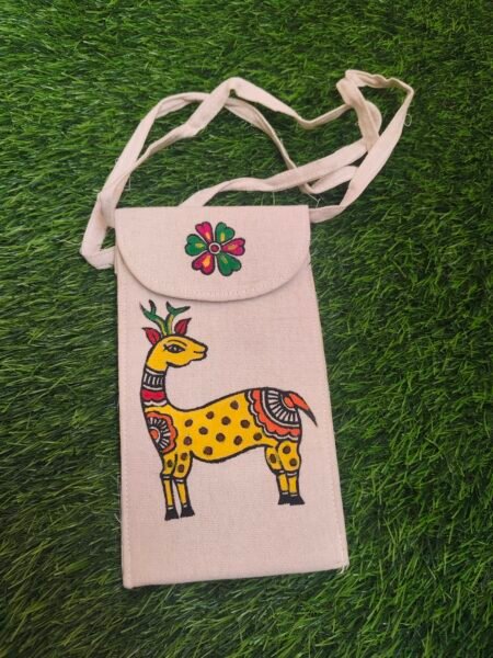 Deer Hand-Painted Madhubani Mobile Sling